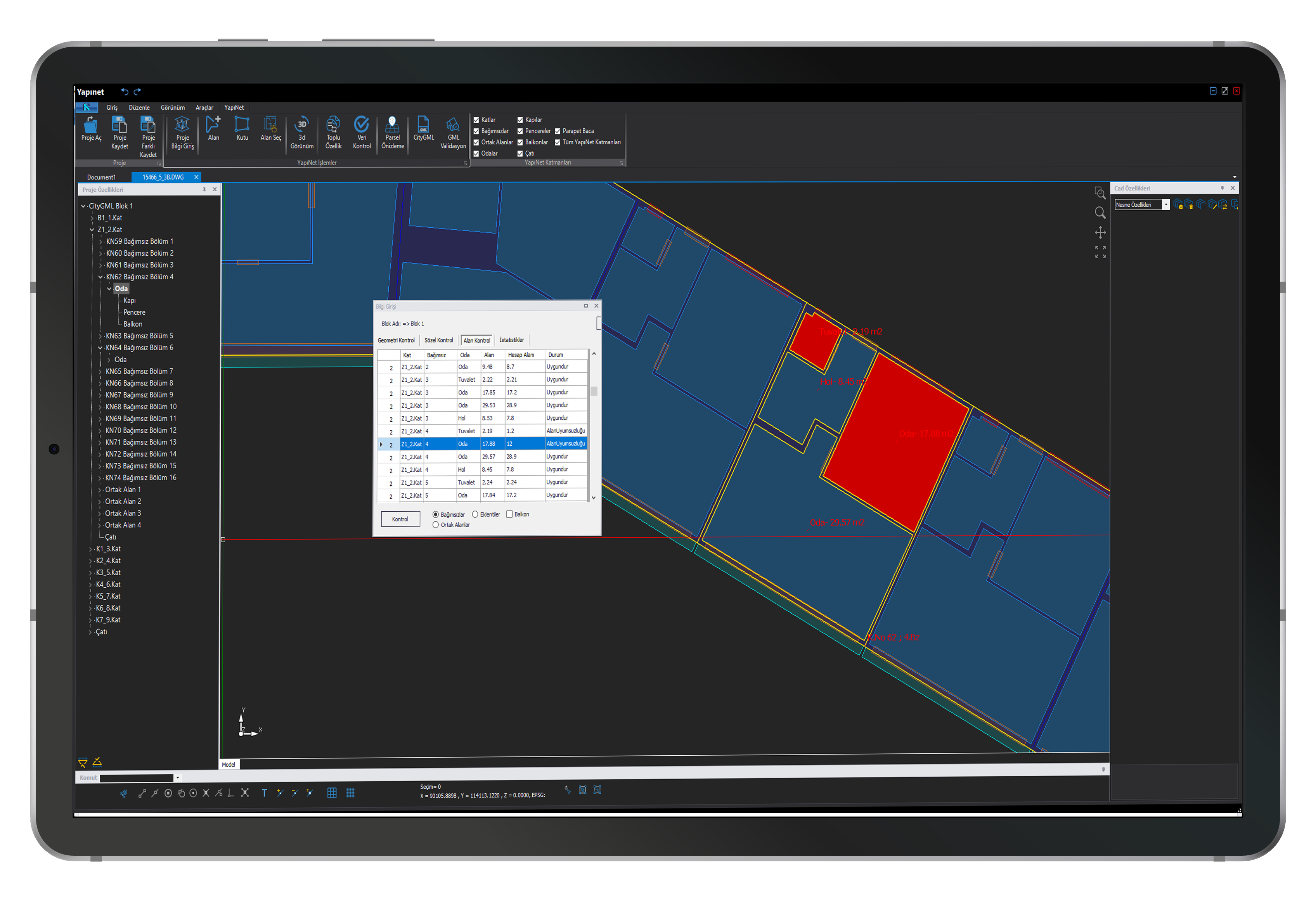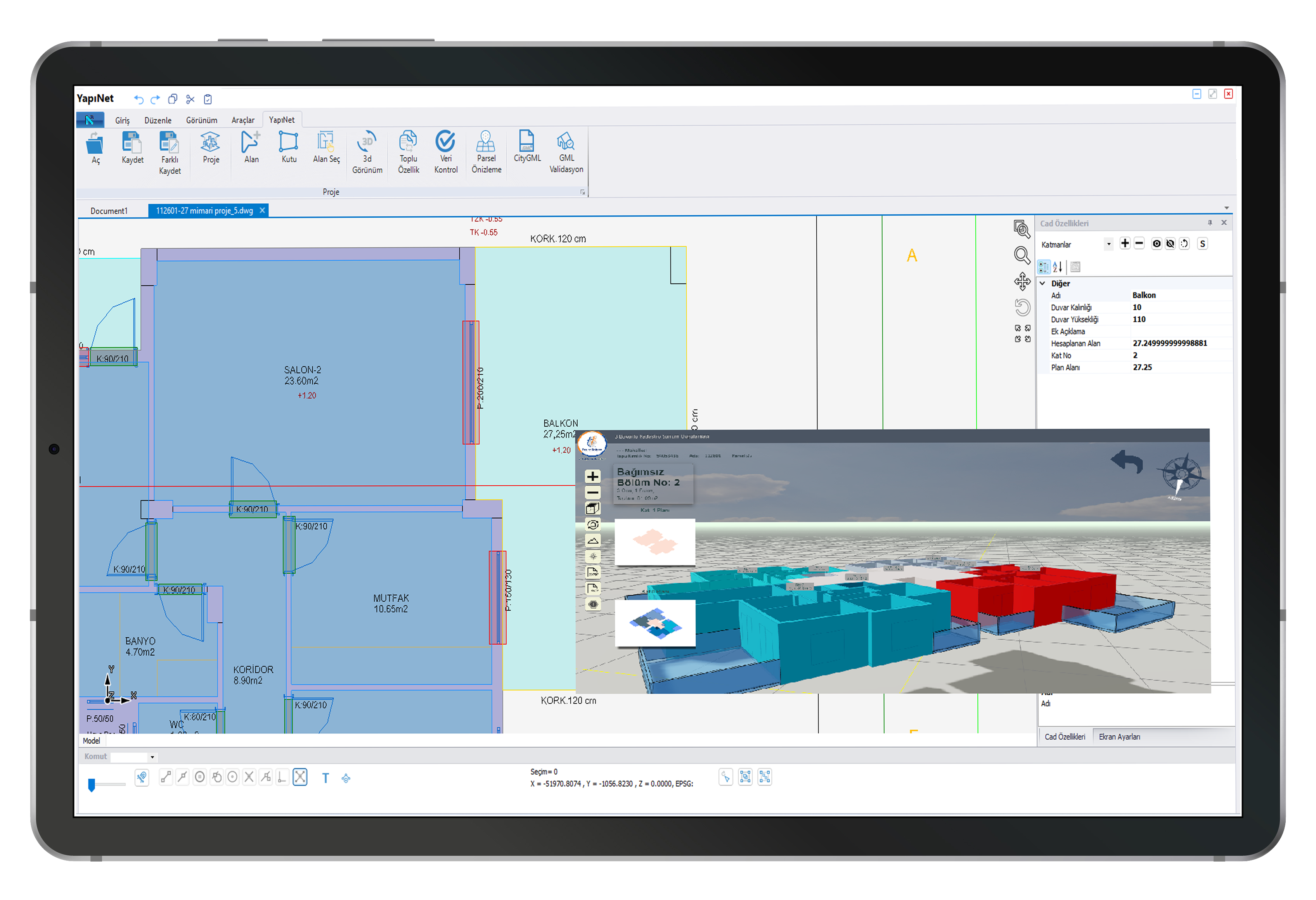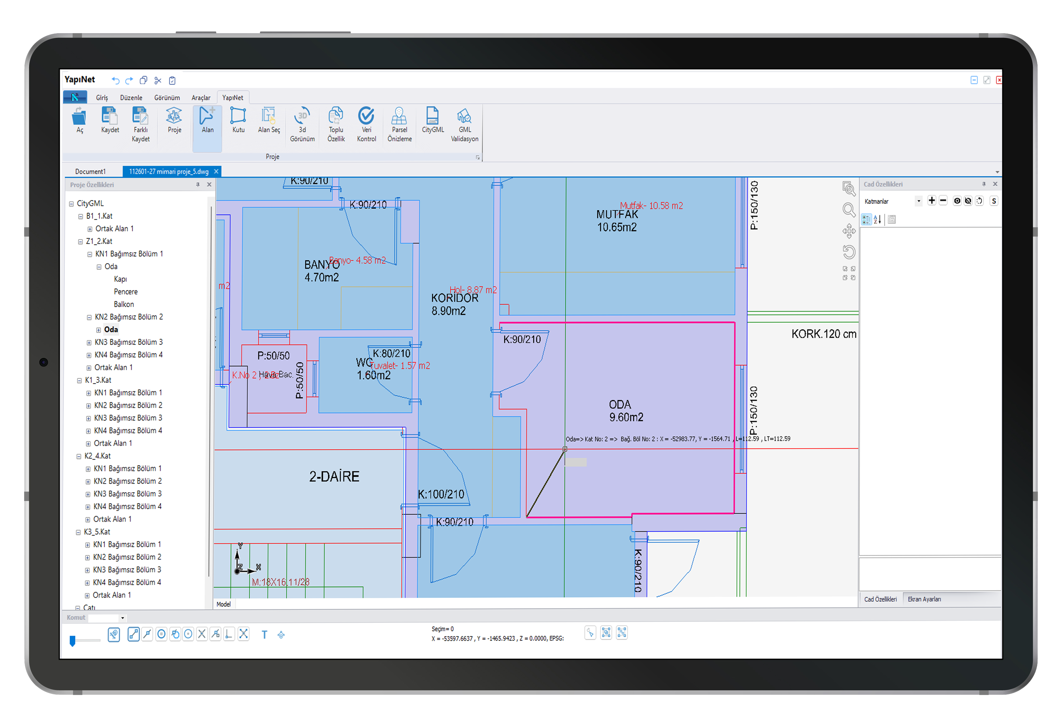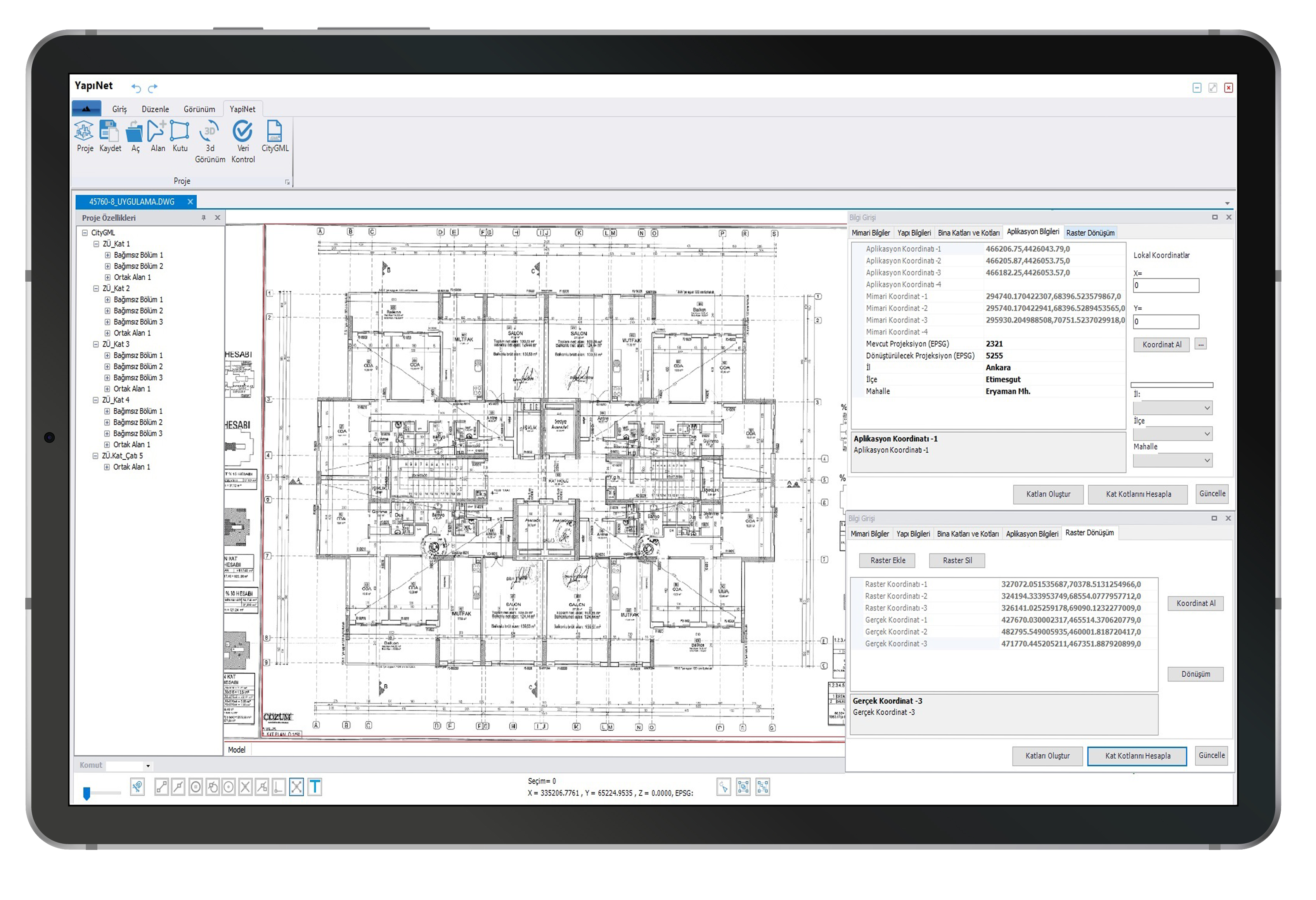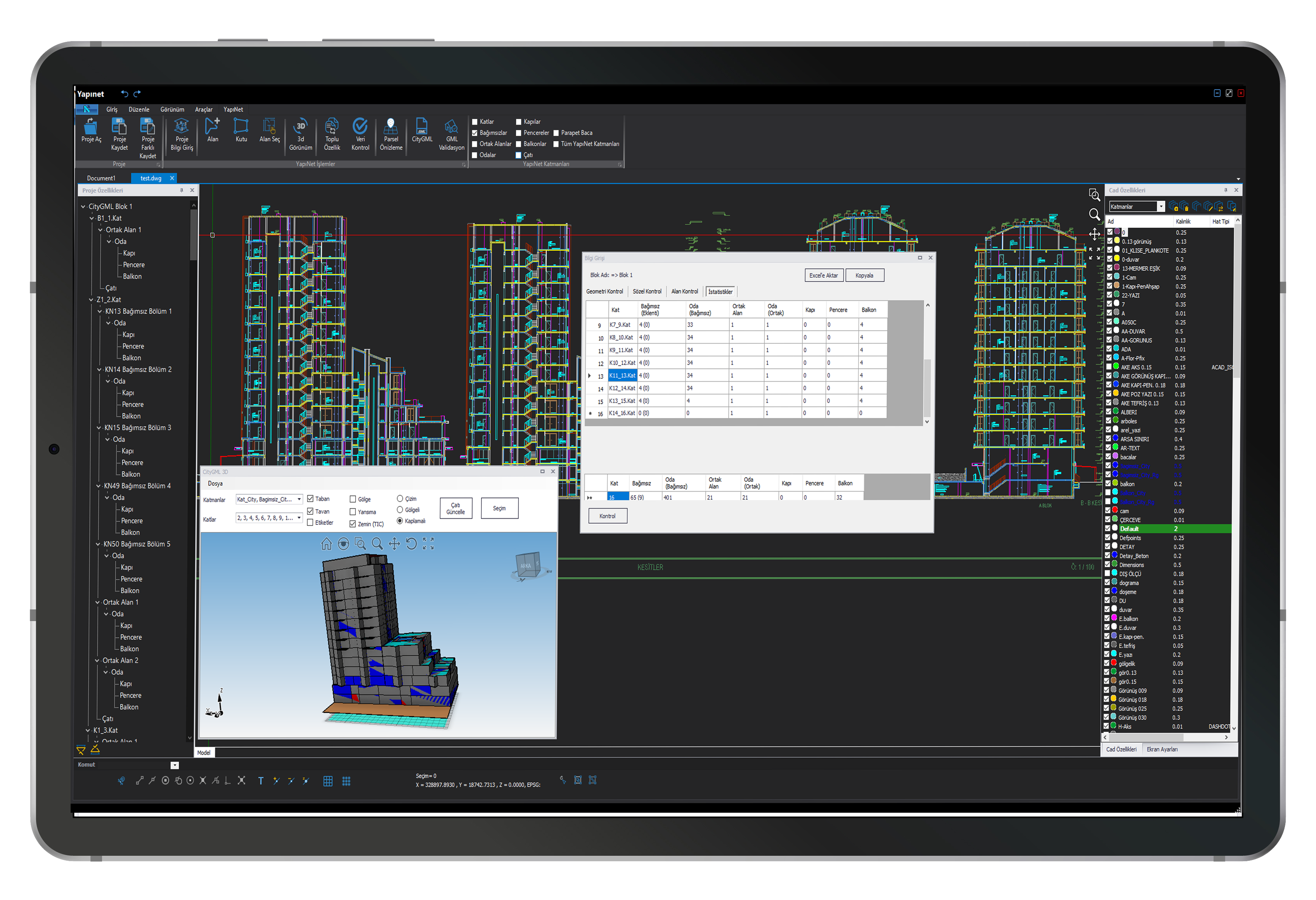 Проекты, созданные с помощью Yapınet, полностью совместимы со стандартными 3D-чертежами, базами данных и структурами слоев, указанными Главным управлением земельного кадастра для формата файлов CityGML.